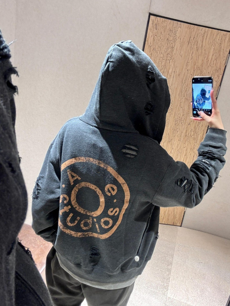 Home > Acne Studios new zip-up distressed and ripped hooded sweatshirt-5445