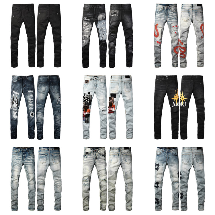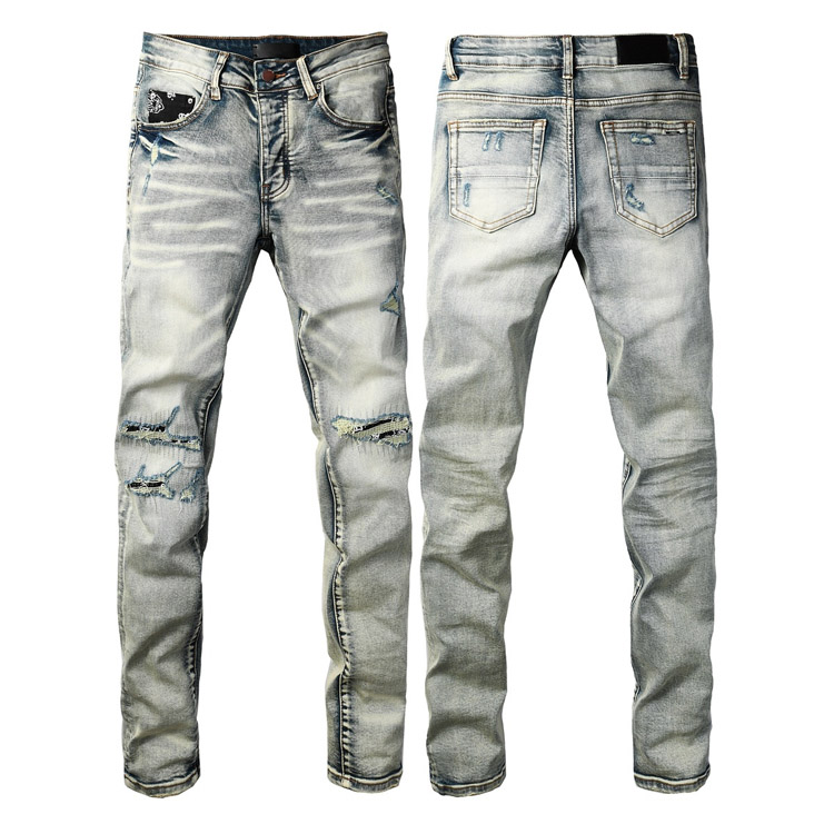 AMIRI new letter LOGO ripped patch slim-fit skinny jeans-4253