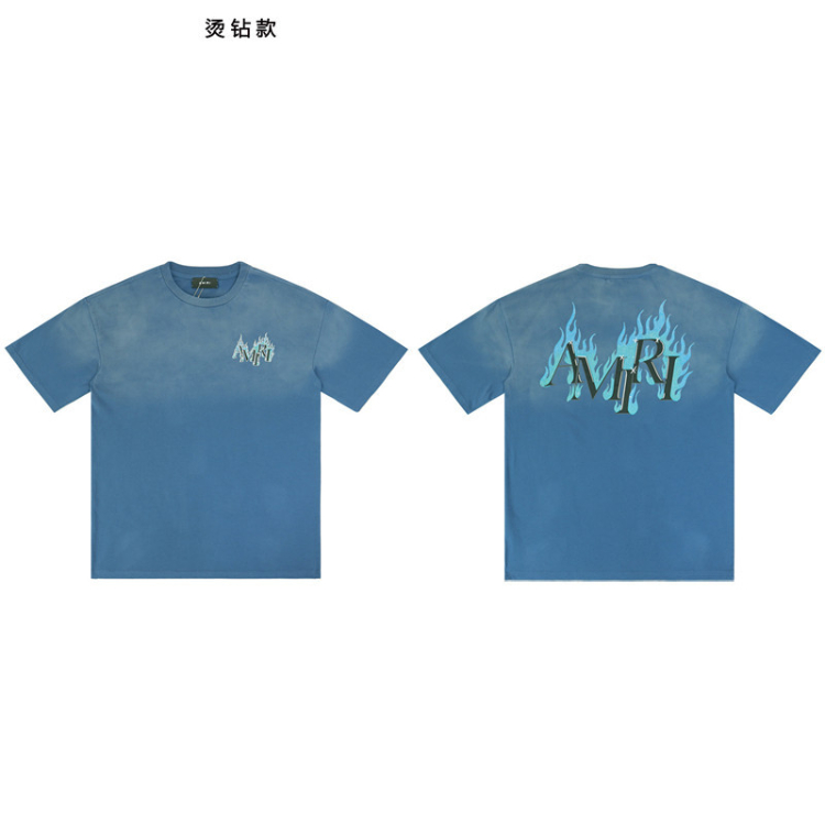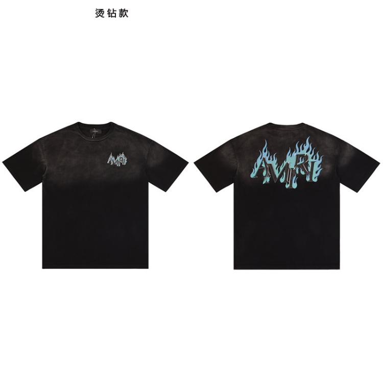 AMIRI rhinestone flame letter print washed short-sleeved T-shirt-5865