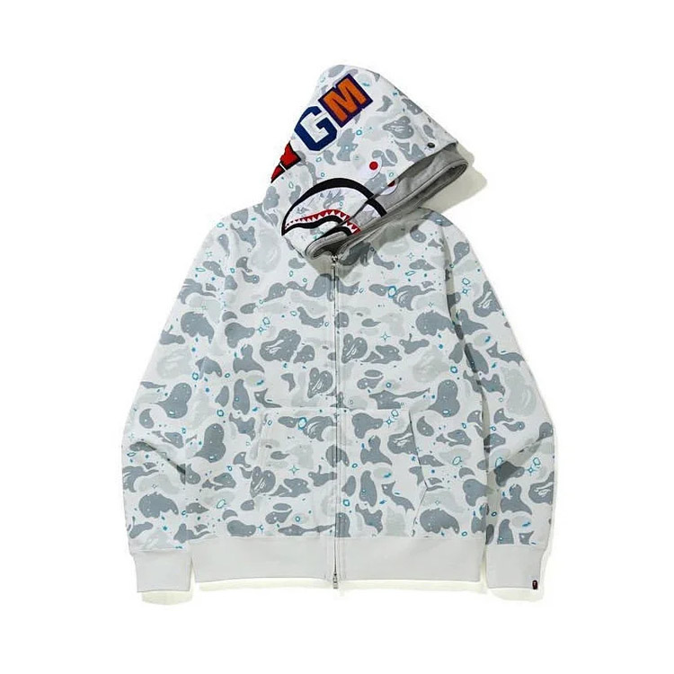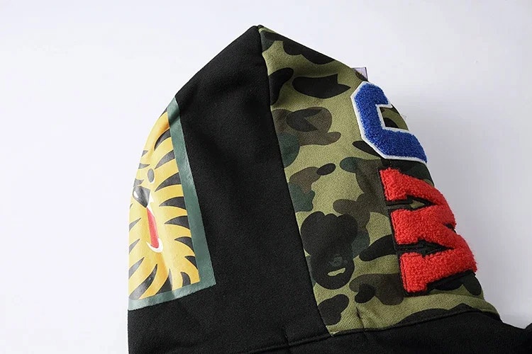 BAPE colorblock fluorescent shark series hooded pullover sweatshirt jacket-4244