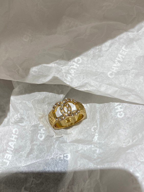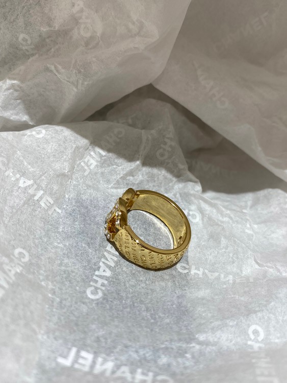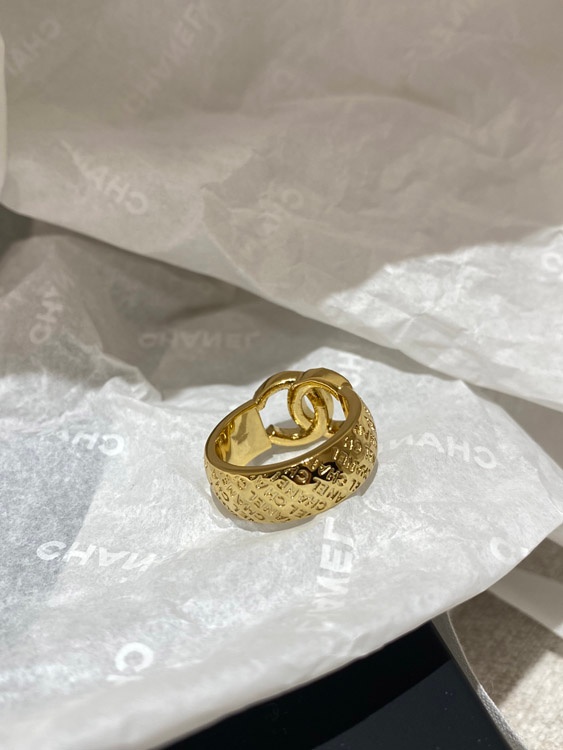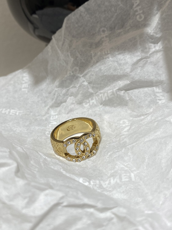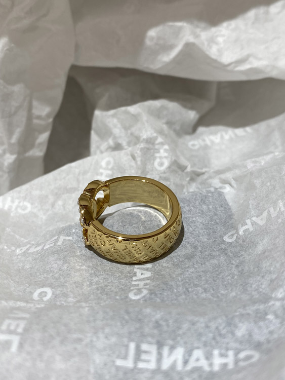 Chanel gold letter embossed double C diamond double-sided wearable ring-3591