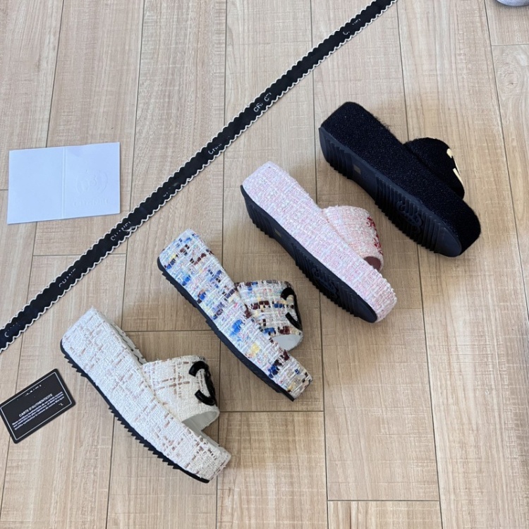 Chanel new embroidered platform beach sandals-5706