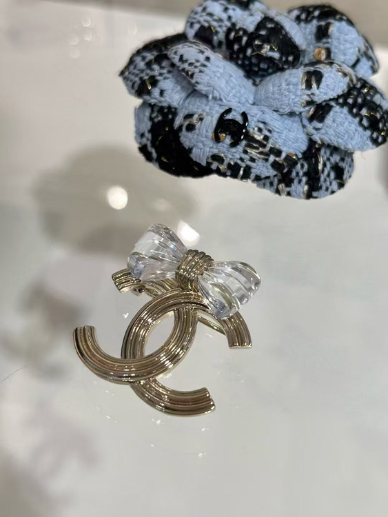Home > Chanel transparent acrylic bow gold double C brooch-3751