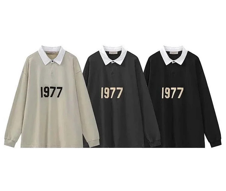 ESSENTIALS Printed Polo Collar Color-Blocked Pullover Terry Sweatshirt-5214