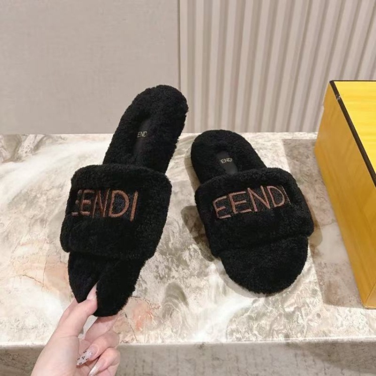 Fendi new design letter embroidered fur slippers-5689
