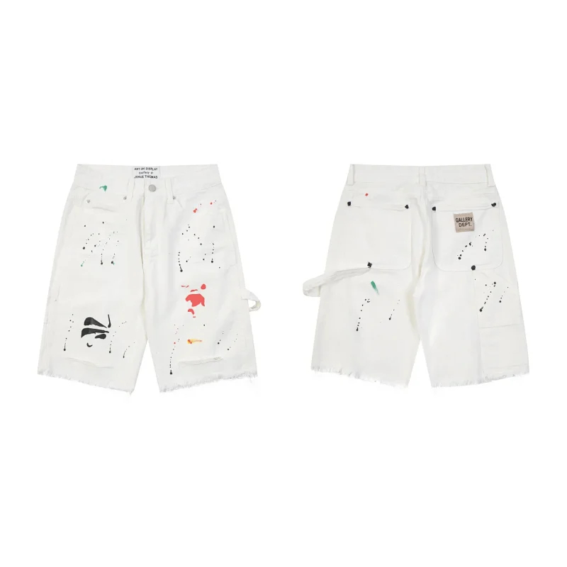 Gallery Dept embroidered letters washed jeans for women in high waist loose shorts with tassels worn out (7 styles)-2437