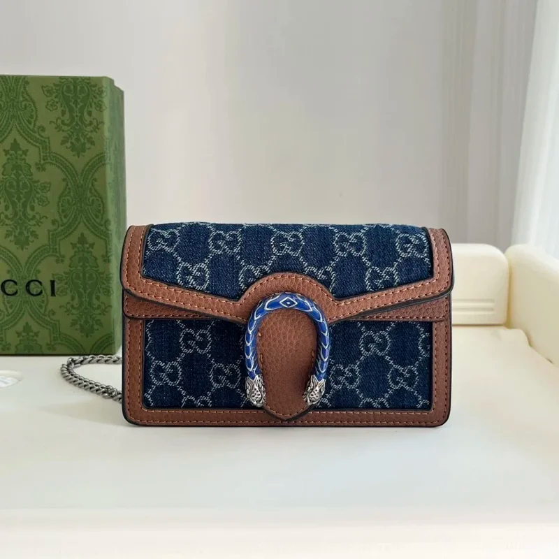 Gucci 2025 new genuine leather Dionysus women's bag high-end versatile shoulder crossbody chain small square bag-2603