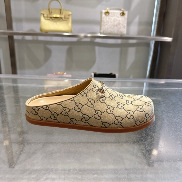 Gucci new round-toe horsebit buckle flat mules-5749