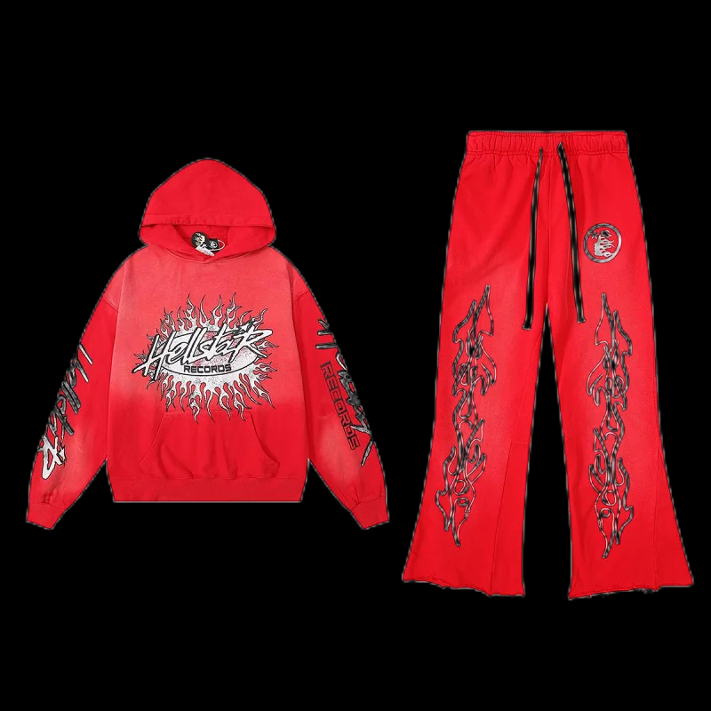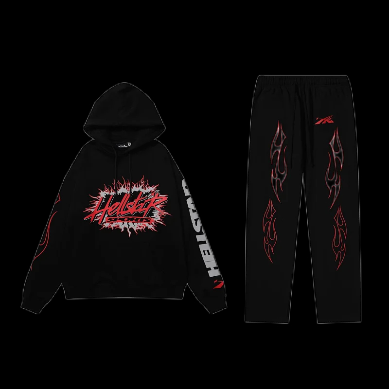 Hell Star Distressed Hoodie Set-0066
