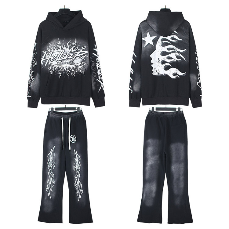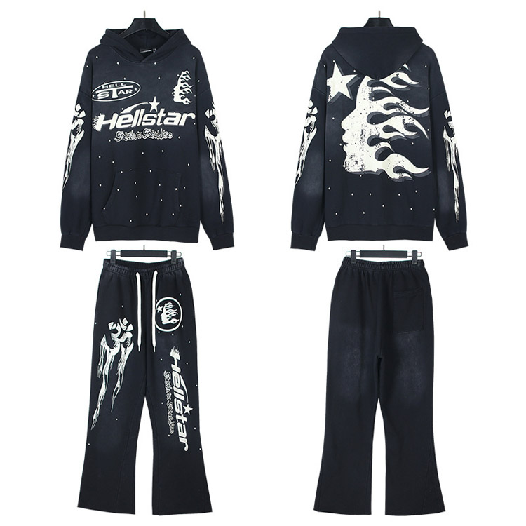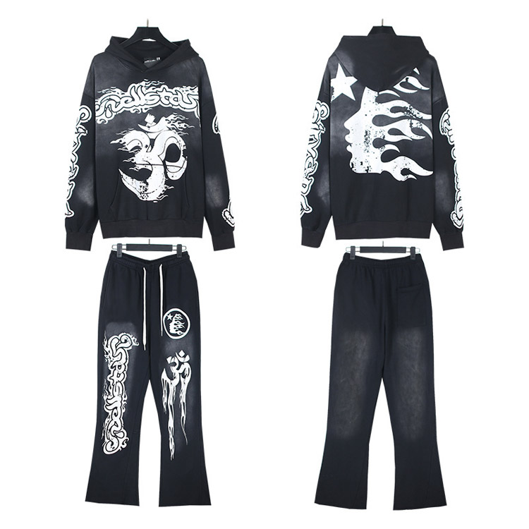 Hellstar Hooded Long-Sleeve Sweatshirt and Sweatpants Set-4549
