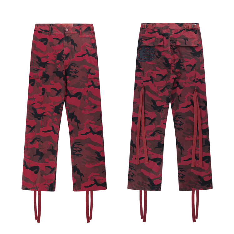 Home > Hellstar new embroidered ribbon straight-leg camouflage work pants-5280