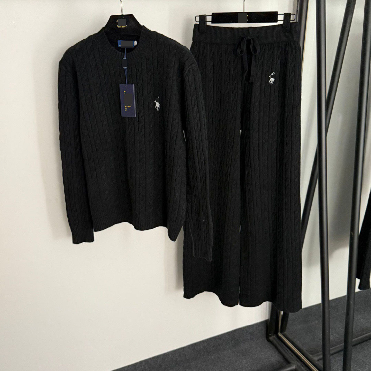 Polo Ralph Lauren embroidered cable-knit striped sweater set-5398