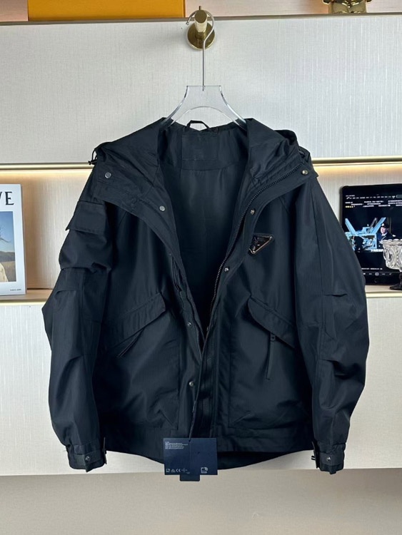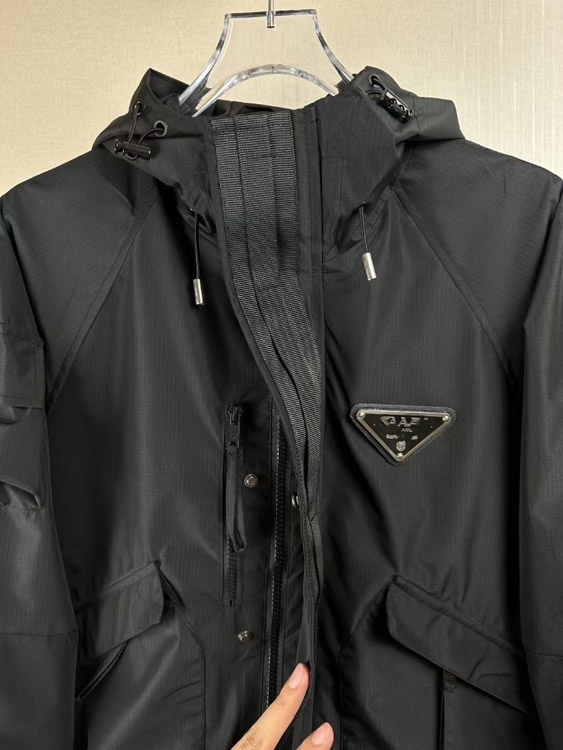 Prada new metal triangle logo workwear multi-pocket zip-up jacket-5306