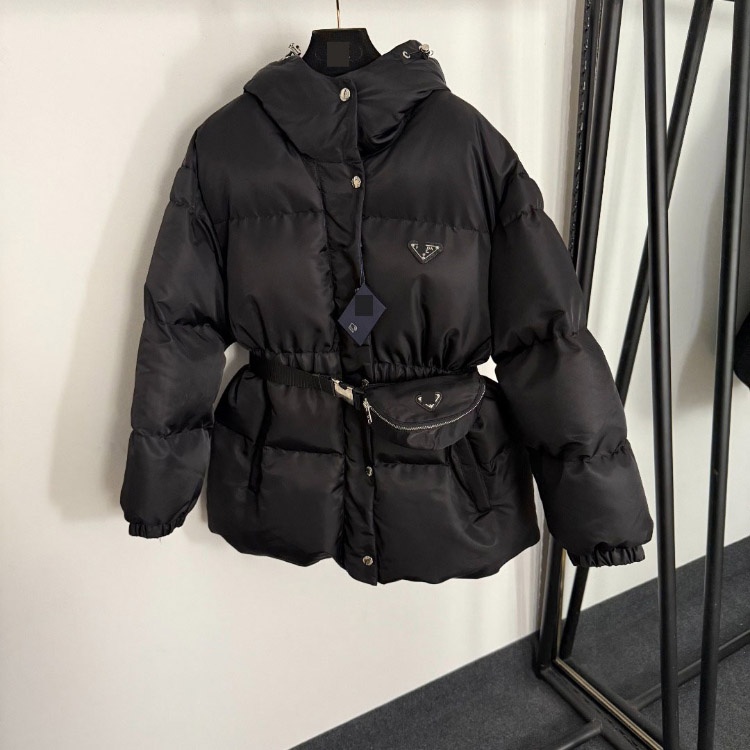 Prada new safety buckle zipper waist bag hooded down-filled cotton jacket-5399