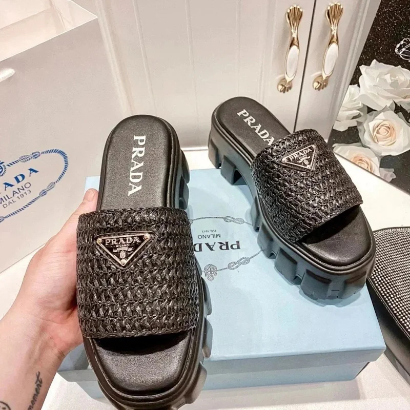 Prada's new thick-soled Roman woven European and American style height-enhancing sandals and slippers(40 styles)-2339