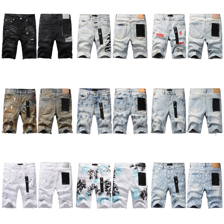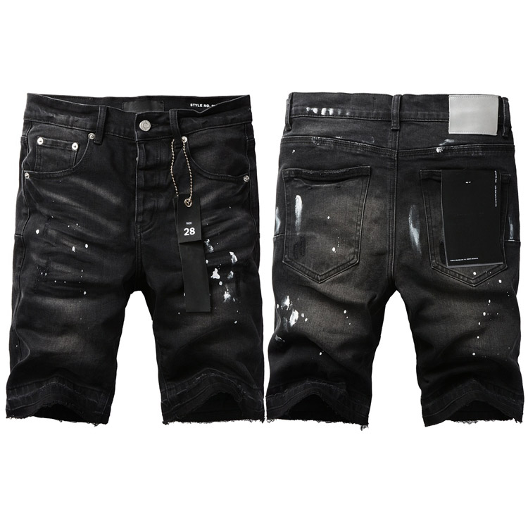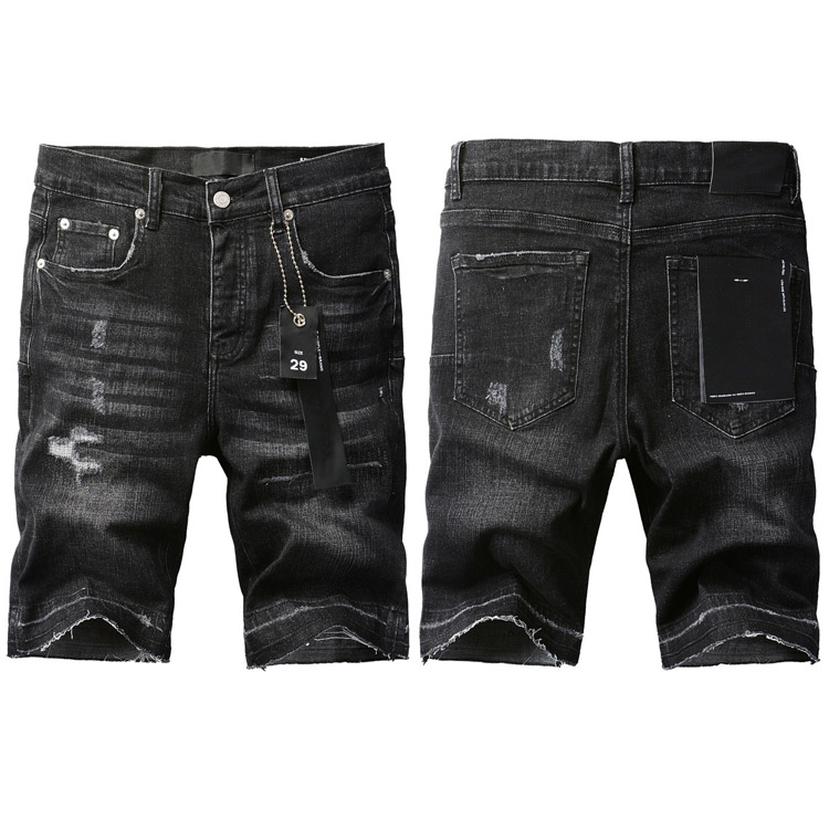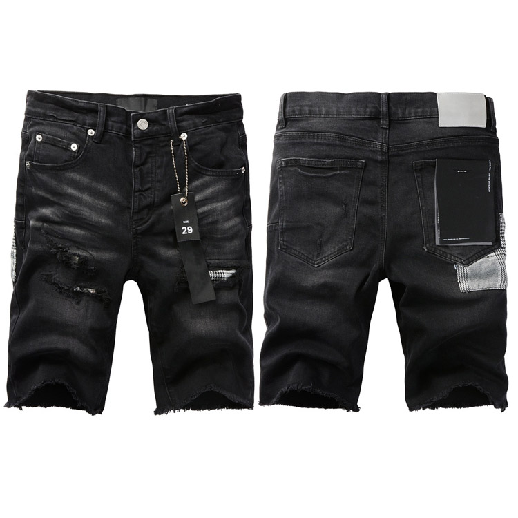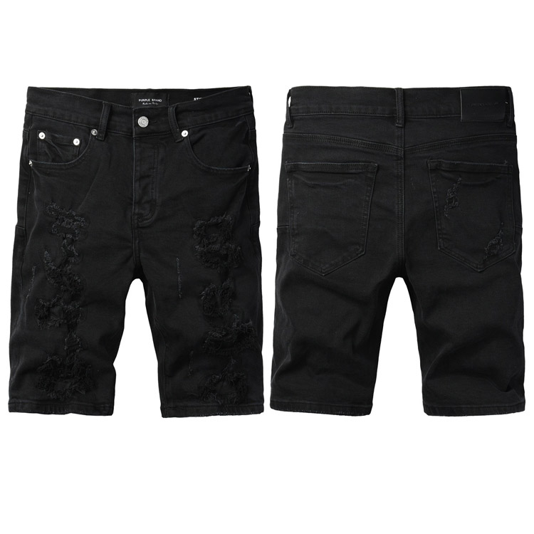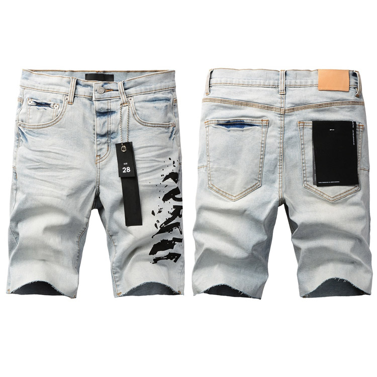Purple Brand new jeans shorts elastic ripped patch slim fit casual shorts-4255