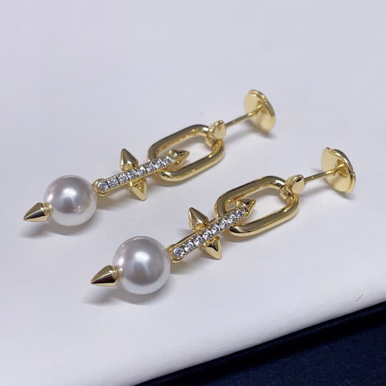 Tiffany diamond pearl rivet earrings-3679