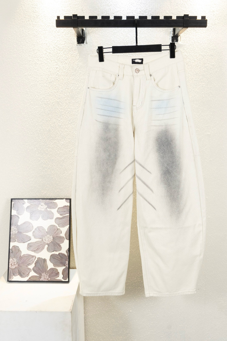Balenciaga's new vintage-style tie-dye wide-leg denim casual trousers-5433