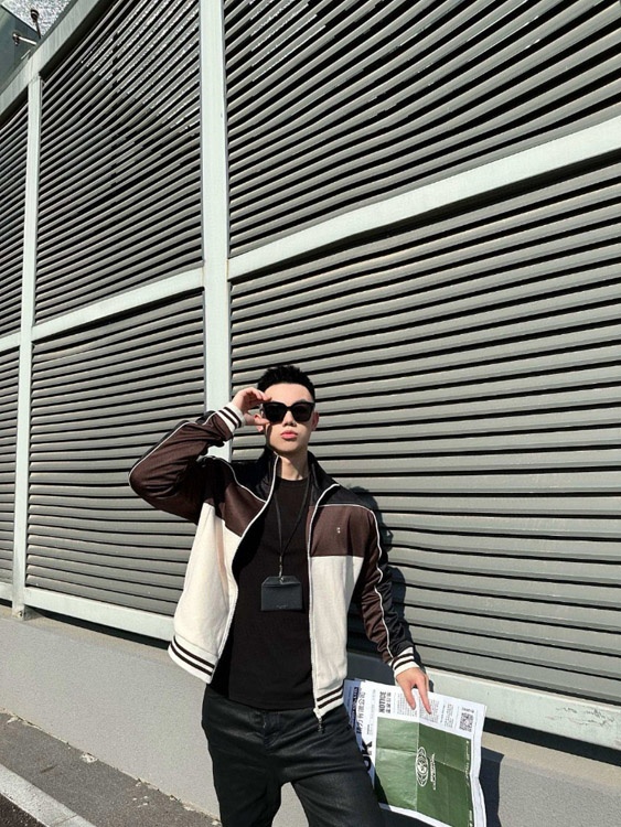 Home > Celine embroidered chocolate-colored patchwork color-block casual jacket-5482
