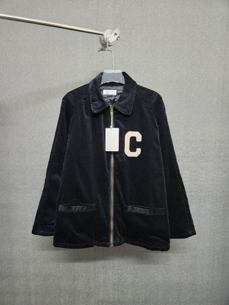 Celine new corduroy jacket with letter patches and padded lining-5498