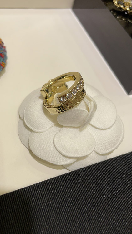 Chanel double misaligned gold double C ring-3961