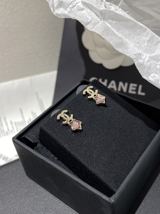 Chanel pink star light gold earrings-3929