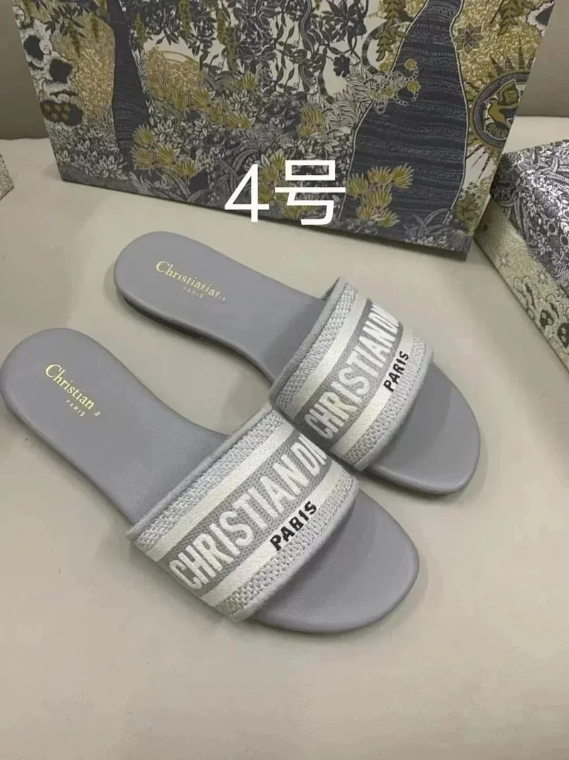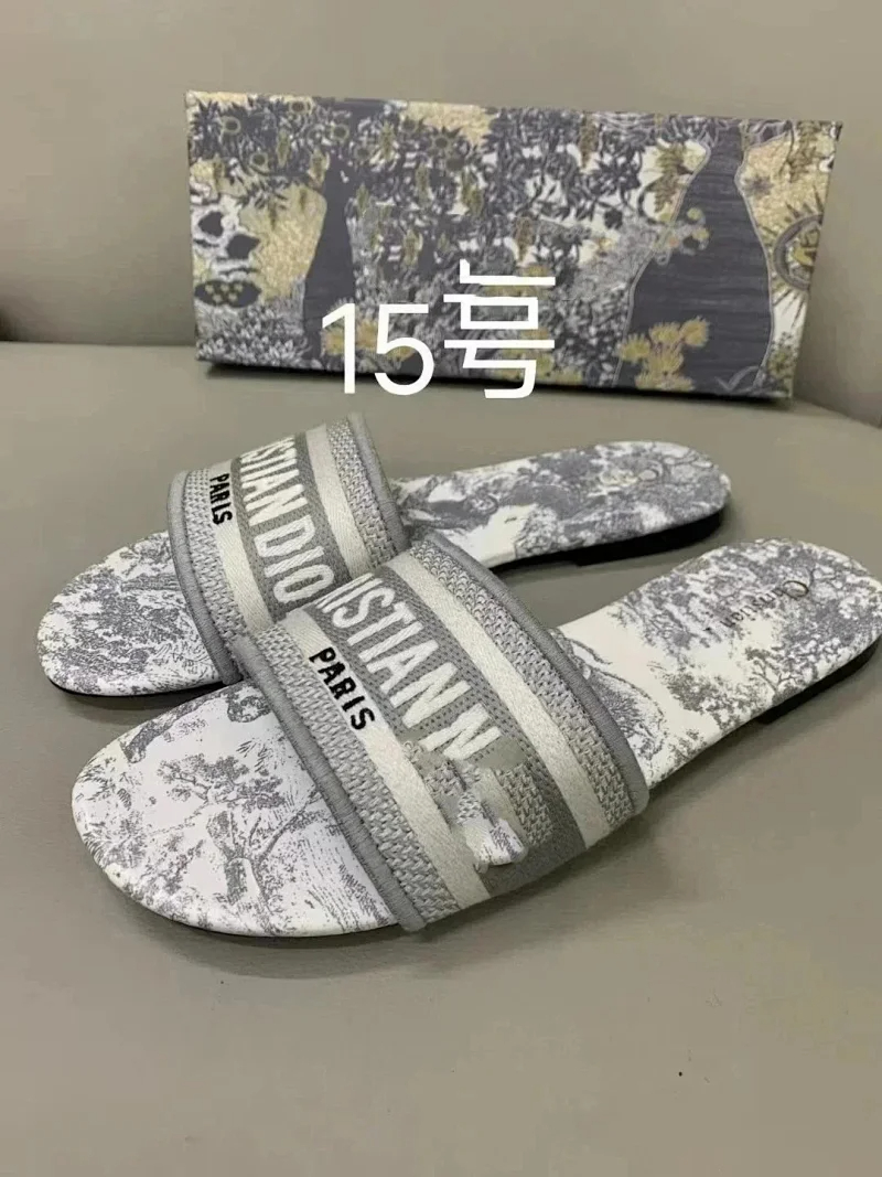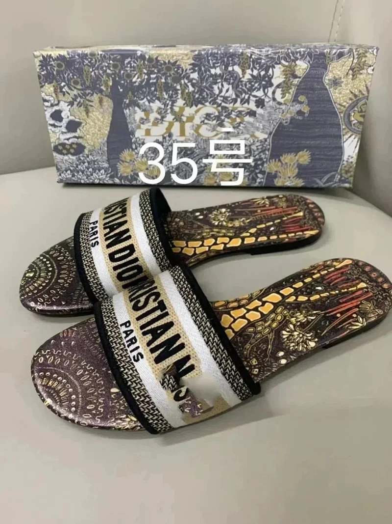 Dior 2025 new summer genuine leather letter embroidered outerwear women's slippers-2336