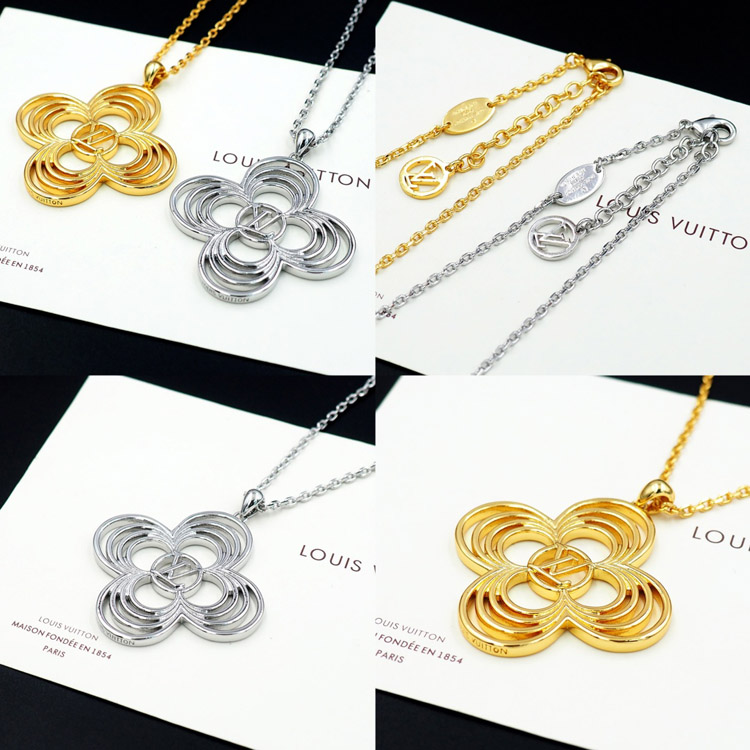 Louis Vuitton LV Floral Round Flower Hollow Metal Wire Outline Necklace-3571