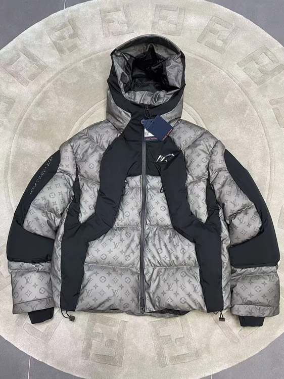 LOUIS VUITTON LV FW21 patchwork warm fluffy hooded down jacket winter -4334