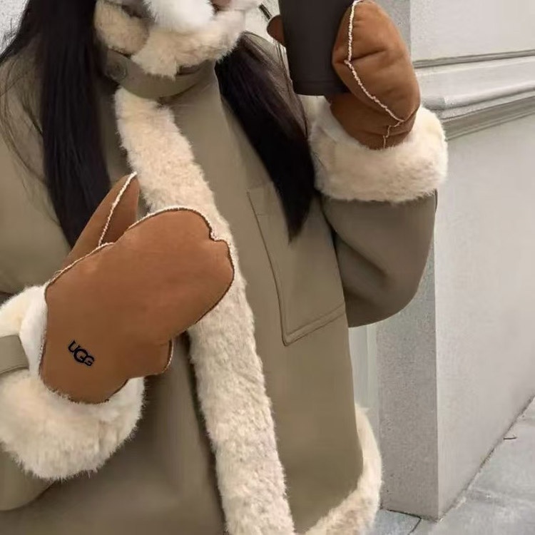 UGG new Lei Feng-style cycling hat and gloves set made with plush faux fur lining-5171