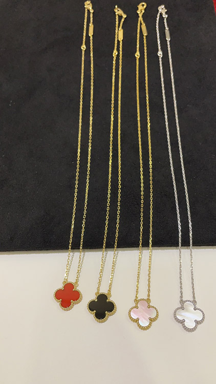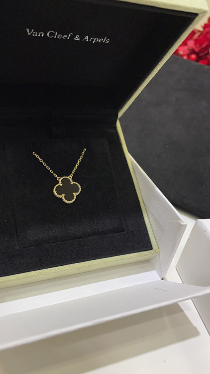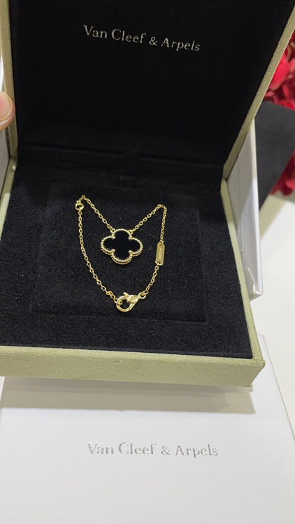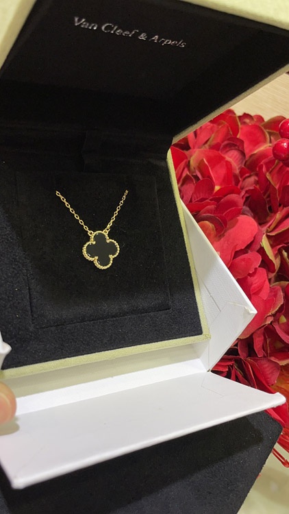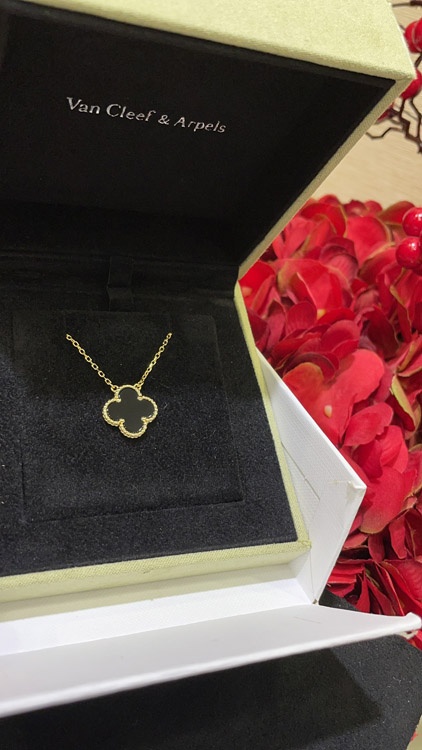 Van Cleef & Arpels Black Onyx Four-Leaf Clover Gold Necklace-3887